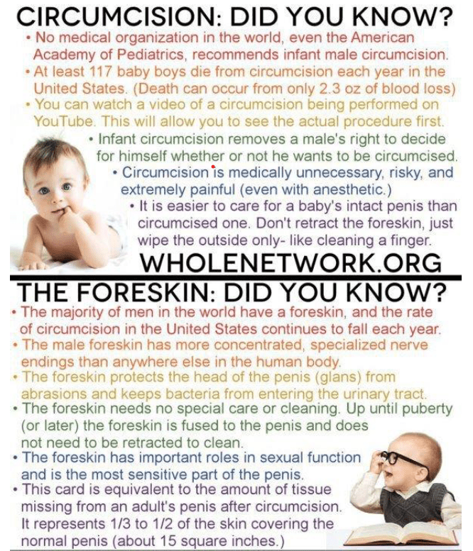 The info in this article comes from evidence-based info. In fact, I did a course about male circumcision and the purpose of the foreskin a few years ago in 4 x 2 hour classes – yup – 8hrs!!  (Who knew there was even that much info out there about down there?)  There is no high-quality, evidence based research that shows the benefits outweigh the risks under normal circumstances.